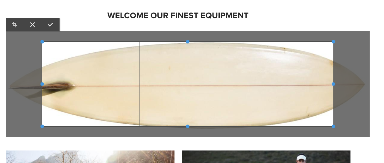Once a crop option is selected, use the blue handles to size the crop on the image.