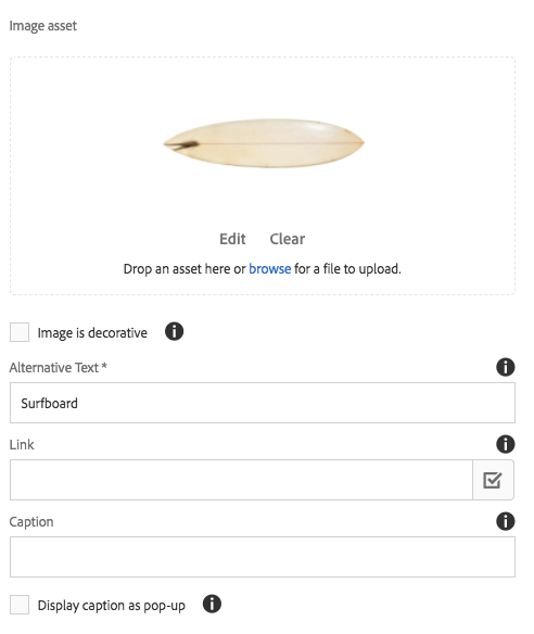 The Core Component Image Component is an adaptive image component features in-place editing.