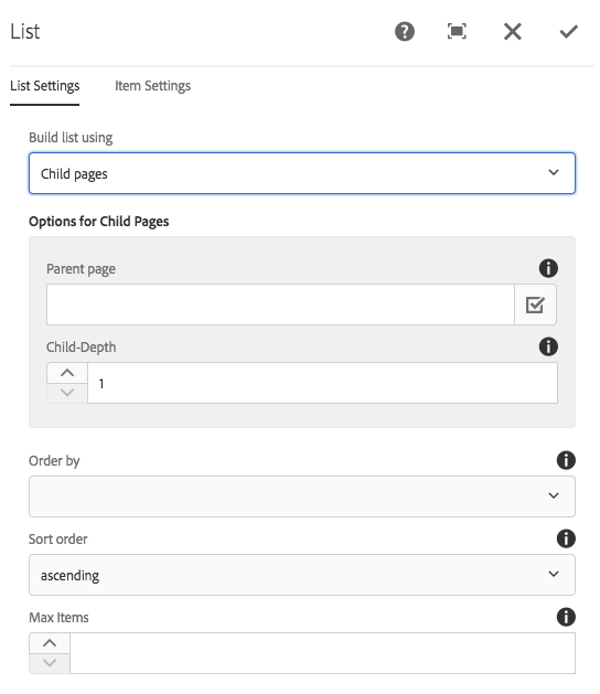 The List Component can be used to create for example a dynamic list of child pages or a static list of arbitrarily defined items.