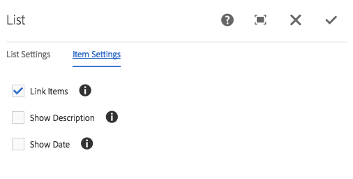 Depending on how the content author chooses to build the list, the additional configuration options will change.