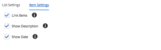 On the Item Settings tab, the formatting options for the individual list elements that should be available in the component for the content authors can be defined.