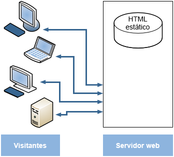 Um servidor Web estático, como o Apache ou o IIS, serve arquivos HTML estáticos para os visitantes do seu site. As páginas estáticas são criadas uma vez, portanto, o mesmo conteúdo será entregue para cada solicitação.