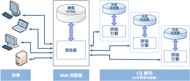 但是,Dispatcher 也可用來提高您編寫執行個體的回應速度,尤其是如果您有大量使用者編輯和更新您的網站時特別實用。如需此情況特有的詳細資訊,請參閱下方的搭配撰寫伺服器使用 Dispatcher。