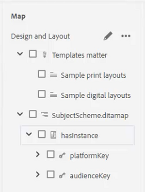 Select a map that references the Subject Scheme ditamap. This example uses the map called Design and Layout.