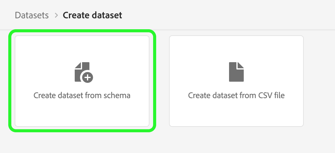 在​ Create dataset ​畫面中,選取​ Create dataset from schema ​以建立新的空白資料集。