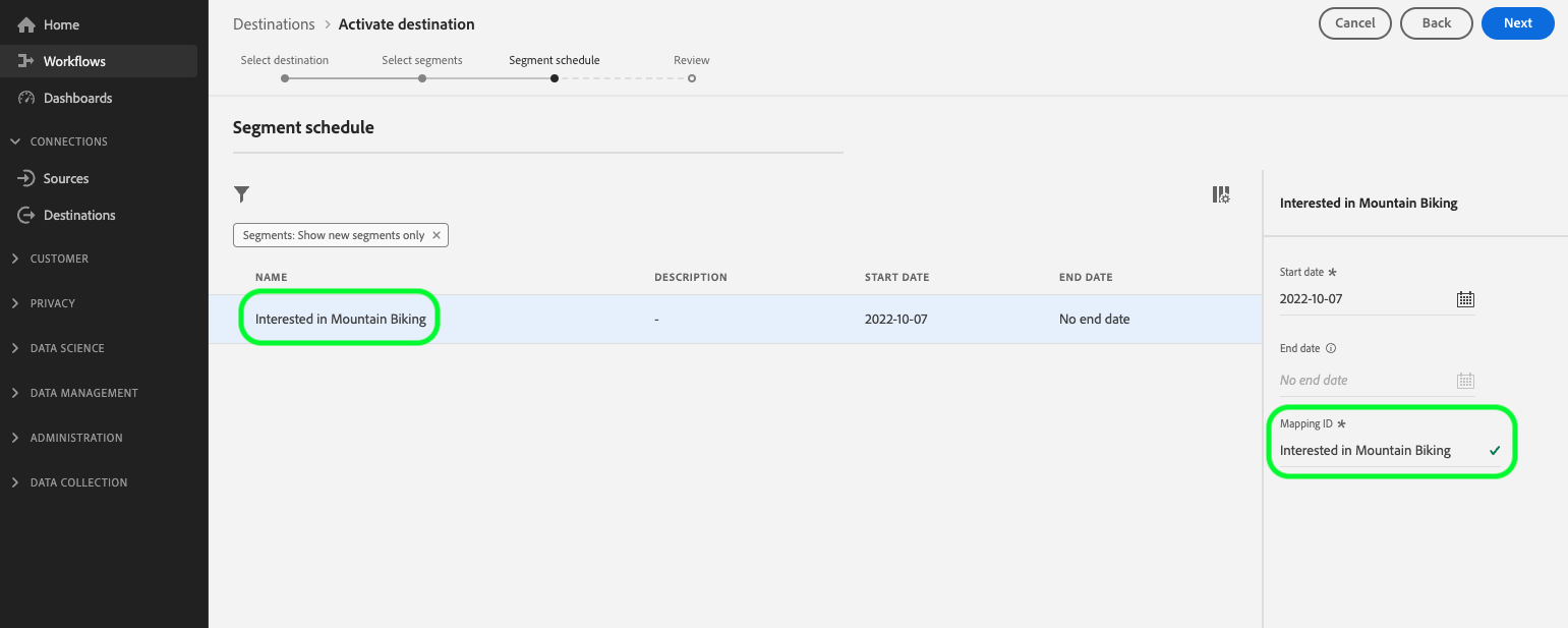 Le seguenti mappature di identità sono preconfigurate e popolate automaticamente durante il flusso di lavoro di Audience Activation: