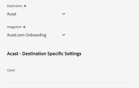 Imagem da interface do Experience Platform mostrando os campos de dados do cliente para o destino Acast.