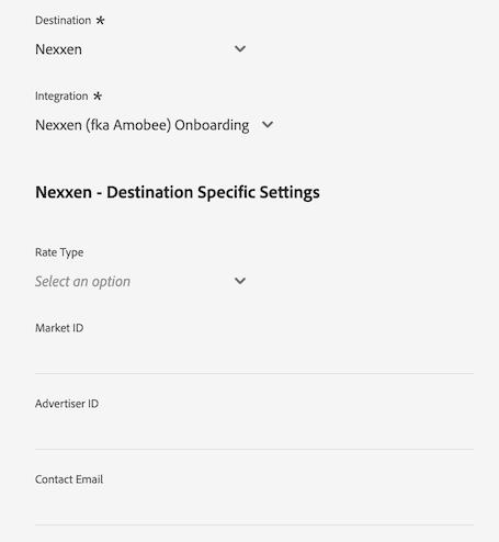 Imagem da interface do Experience Platform mostrando os campos de dados do cliente para o destino Nexxen.