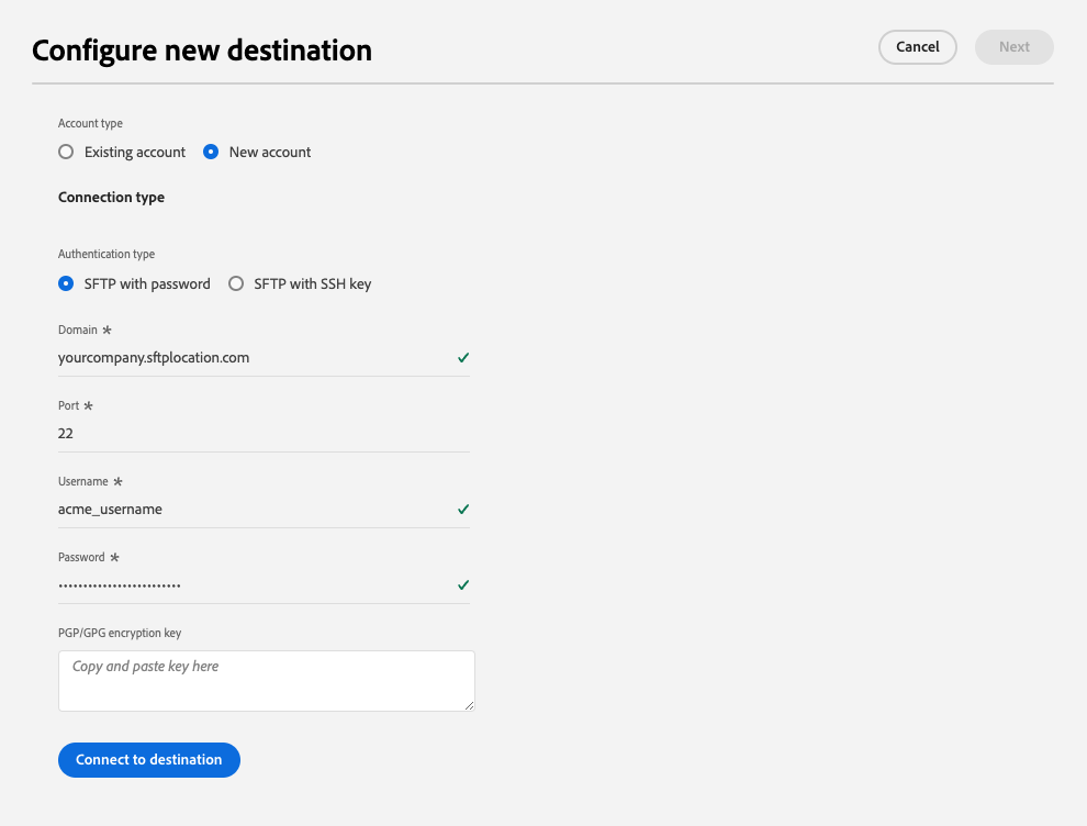 - To connect to your SFTP storage location using the Experience Platform user interface, read the sections Connect to the destination and Activate audiences to this destination below.