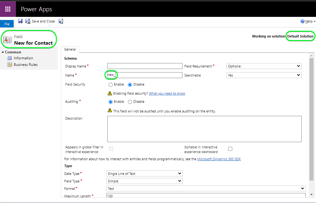 Erstellen eines Felds in Dynamics 365 prerequisites-custom-field