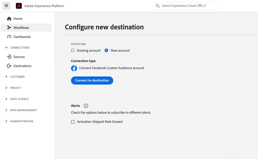 • 데이터를 활성화하려면 View Destinations, Activate Destinations, View ProfilesView Segments 액세스 제어 권한이 필요합니다. 액세스 제어 개요를 읽거나 제품 관리자에게 문의하여 필요한 권한을 받으십시오.