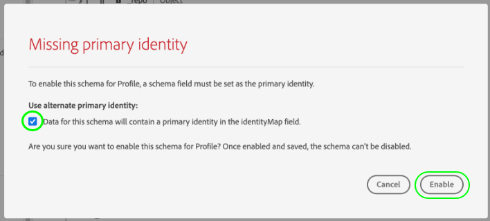 Abilita lo schema da utilizzare in Real-Time Customer Profile