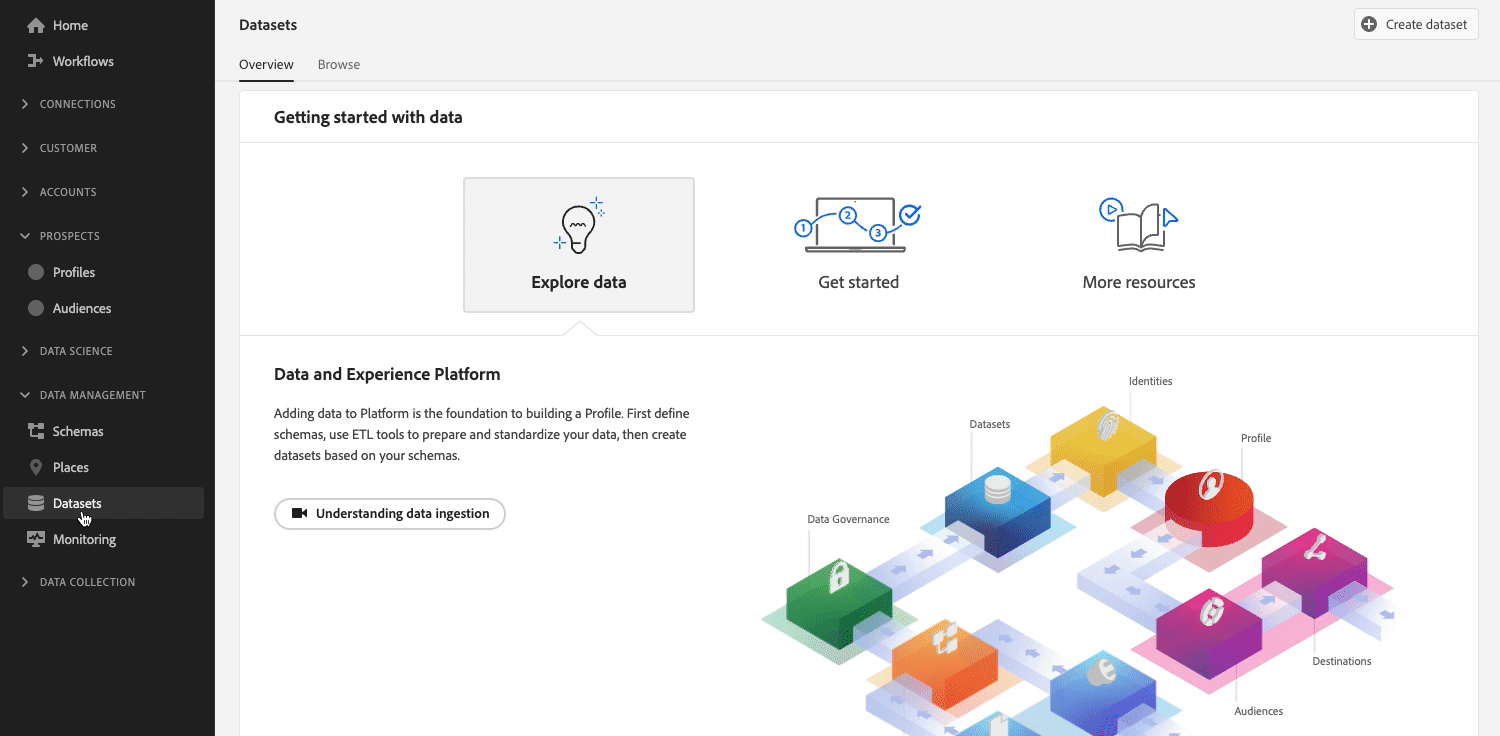 - 導覽至Data Management > Datasets並選取Create dataset。