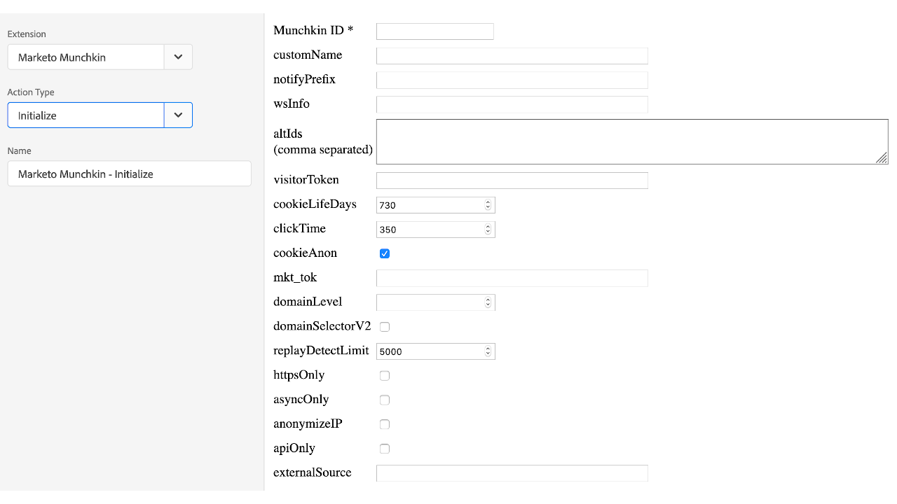 Utilisez cette extension pour intégrer le code de suivi JavaScript Marketo Munchkin à votre propriété. Marketo Munchkin JavaScript permet le suivi des visites et des clics des pages des utilisateurs finaux vers vos pages web externes et vos pages de destination Marketo.