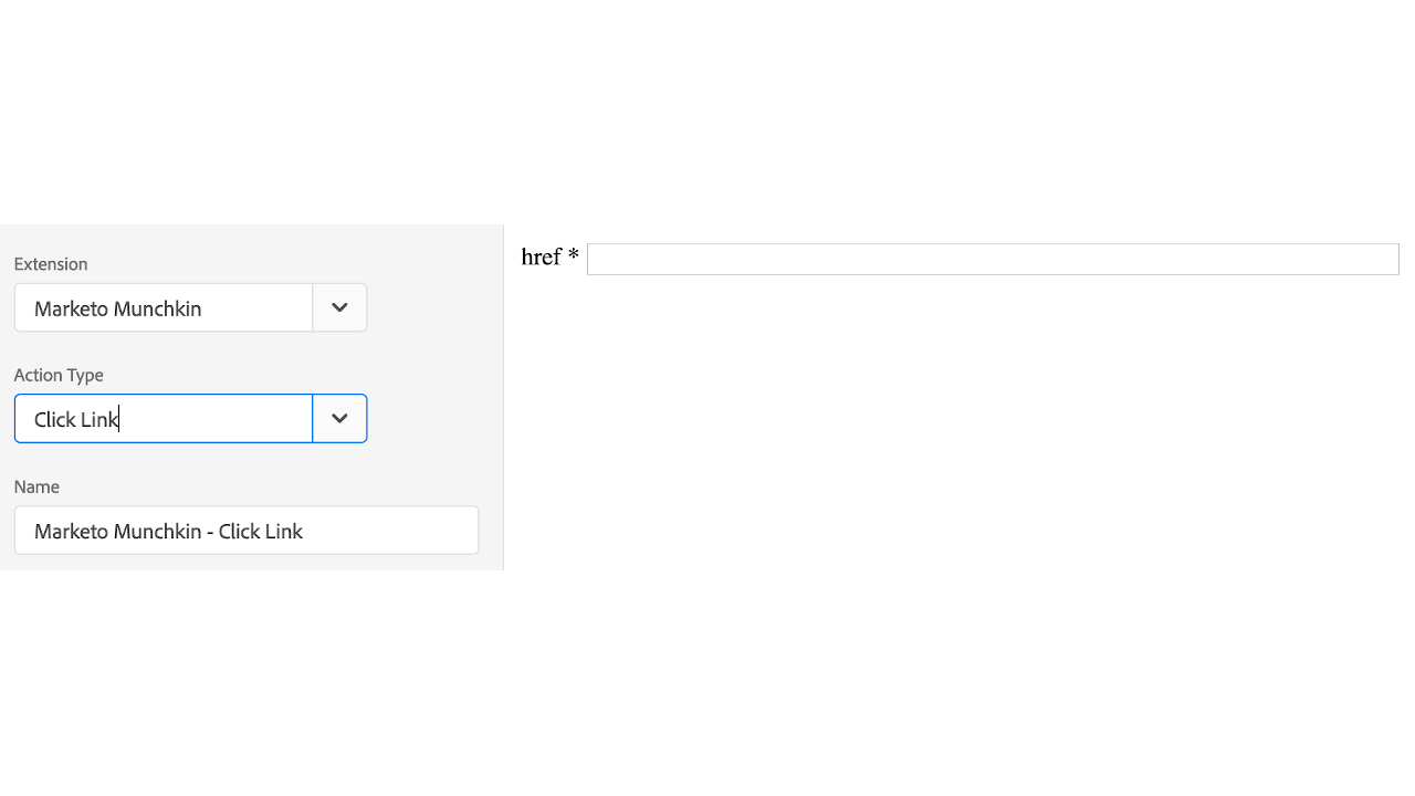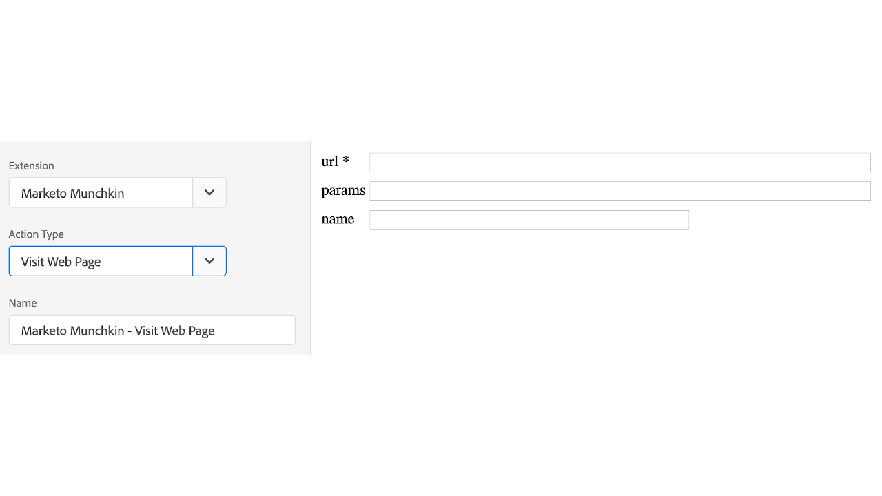 Cette section décrit les types d’actions disponibles dans l’extension Marketo Munchkin.