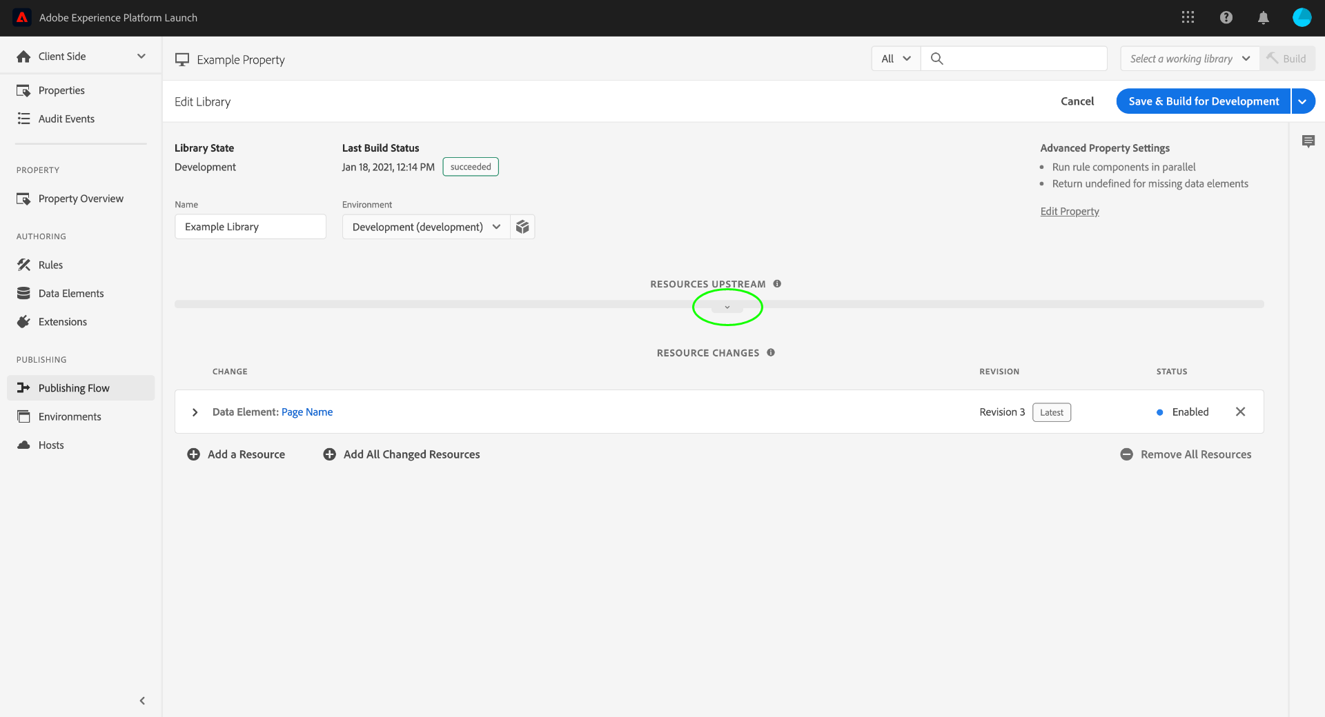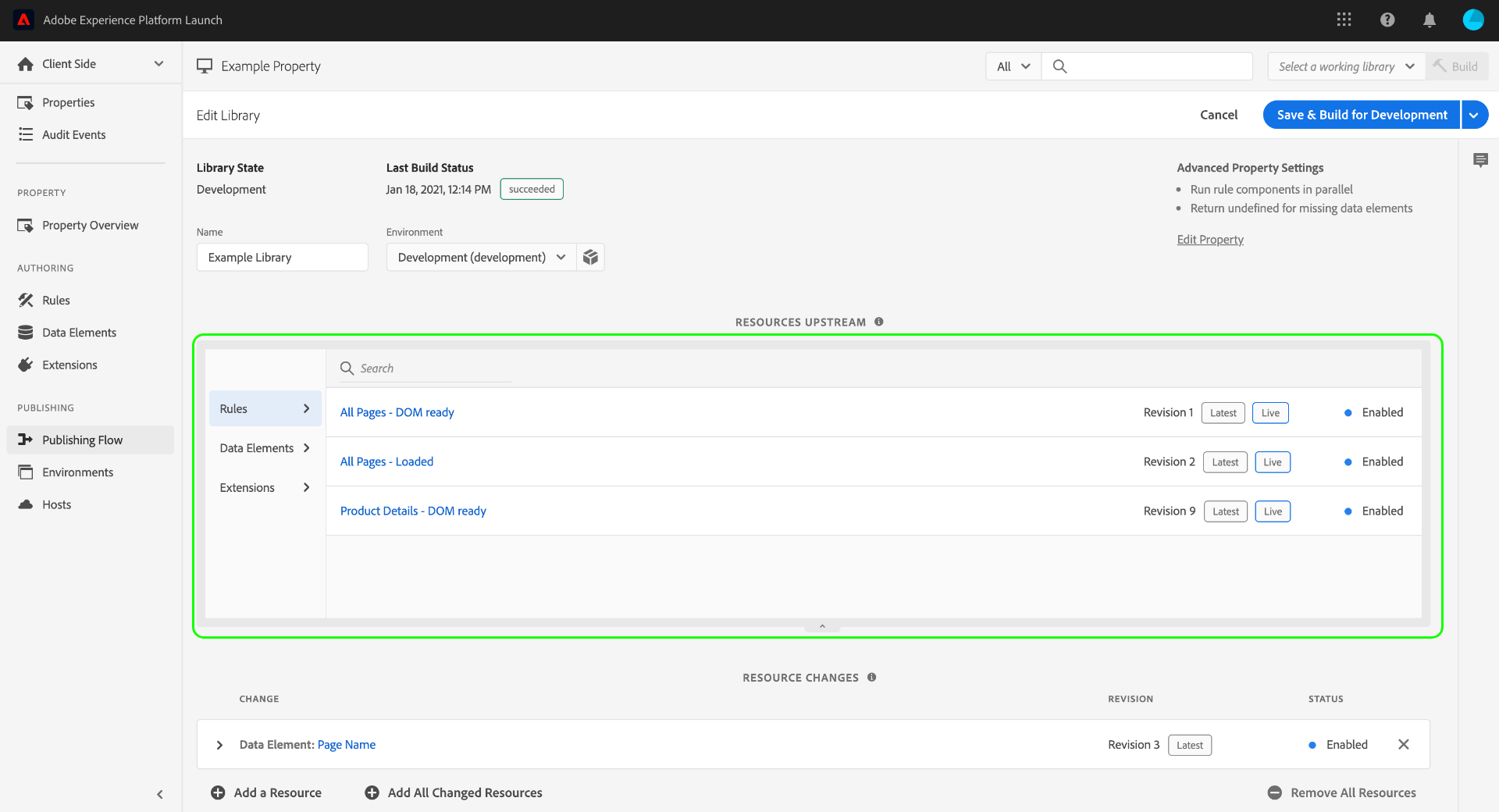 라이브러리가 현재 Development, Submitted 또는 Approved 단계에 있는 경우 해당 라이브러리는 업스트림 라이브러리의 규칙, 데이터 요소 및 확장을 상속합니다. 이러한 상속된 리소스는 게시 플로우를 통해 이동할 때 각 라이브러리에 대한 "기준"을 구성합니다. 기본적으로 업스트림에 의해 설정된 기준선에 대한 일련의 변경 사항으로 각 새 라이브러리를 생각할 수 있습니다. 이렇게 하면 새 이터레이션이 게시될 때 이전 라이브러리에서 예기치 않게 아무것도 덮어쓰지 않습니다.