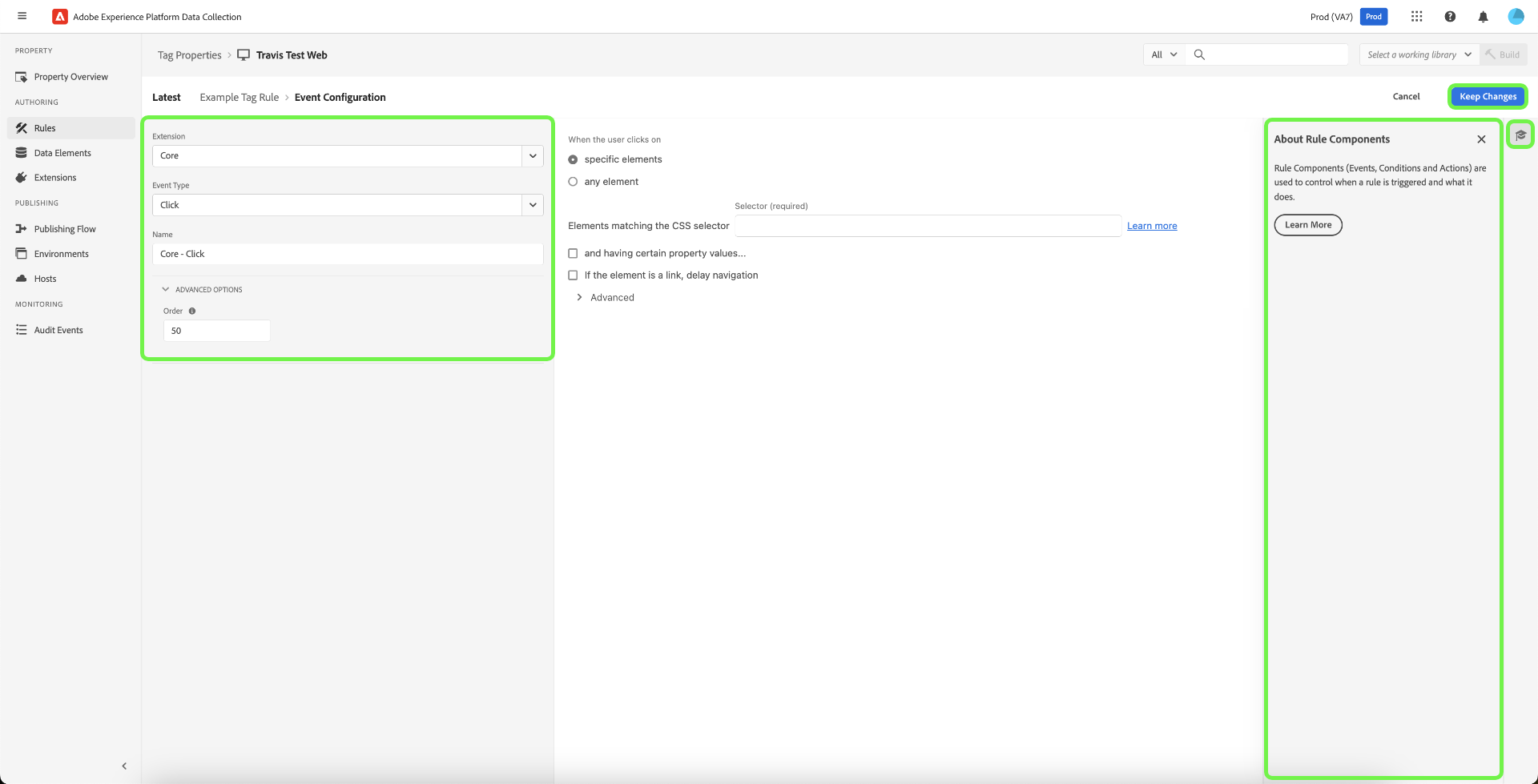 Tags in Adobe Experience Platform follow a rule-based system. They look for user interaction and associated data. When the criteria outlined in your rules are met, the rule triggers the extension, script, or client-side code you identified.