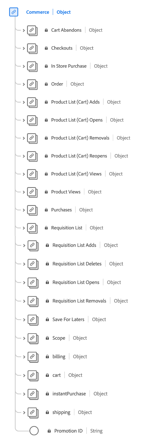 Para obtener más información sobre el tipo de datos Commerce, consulte el repositorio XDM público: