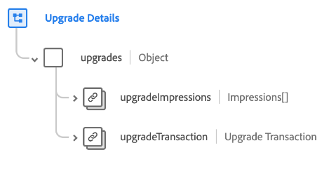 El grupo de campos proporciona un único campo de tipo de objeto, upgrades. Las propiedades contenidas en este objeto se explican a continuación.