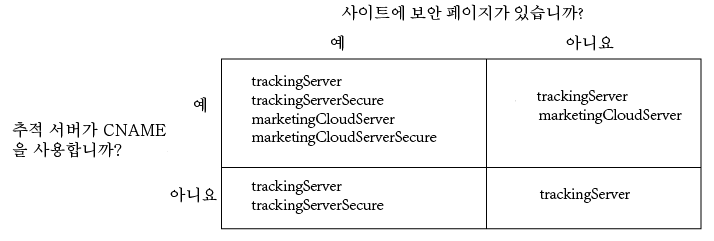 추적 서버를 찾는 방법을 모를 경우 FAQ를 참조하고 올바르게 trackingServer 및 trackingServerSecure 변수를 채웁니다.