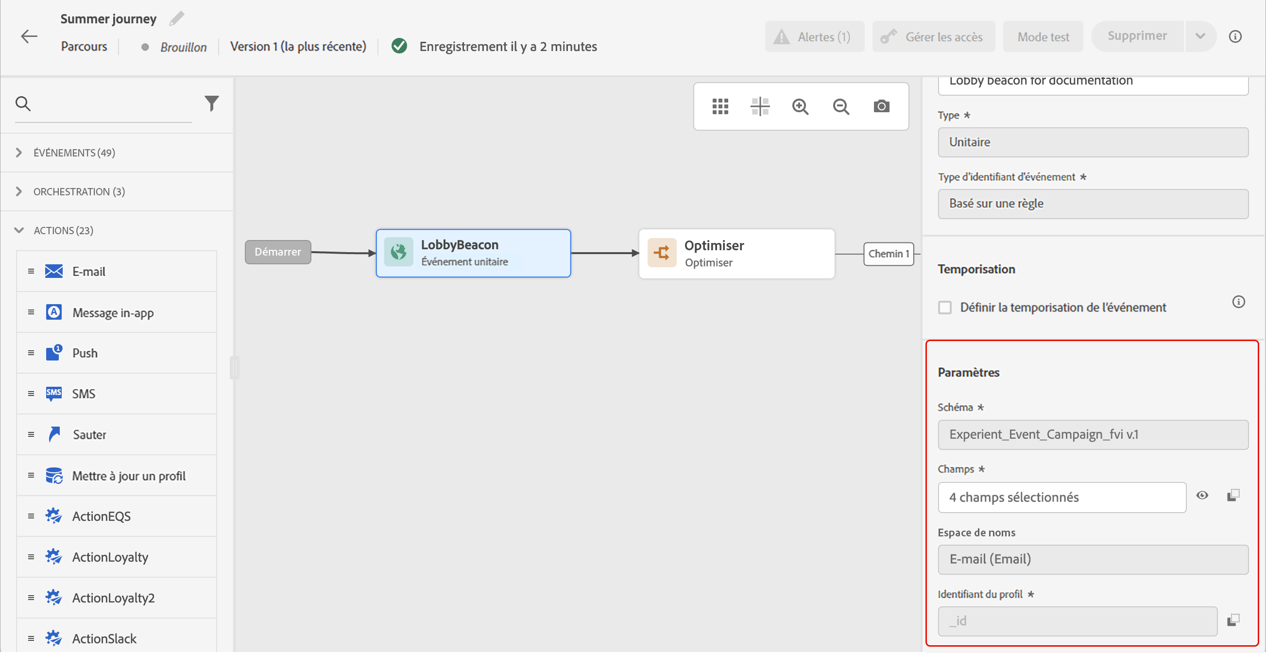Pour démarrer votre parcours, faites glisser et déposez une activité d’événement. Vous pouvez également double-cliquer sur celle-ci.