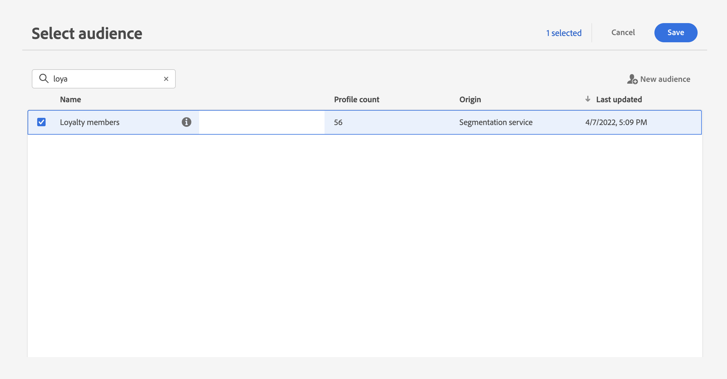 대상자 읽기 활동은 한 대상자만 타깃팅할 수 있습니다. 여러 대상이 필요한 경우 사용하기 전에 이러한 대상을 하나의 대상으로 병합하는 것이 좋습니다. 컴포지션 워크플로를 사용하여 대상자를 결합하는 방법에 대해 알아보세요