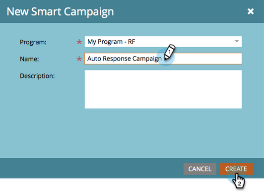 Name your the smart campaign “Auto Response Campaign” and click Create.