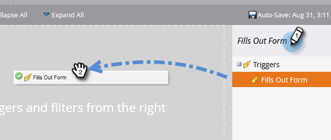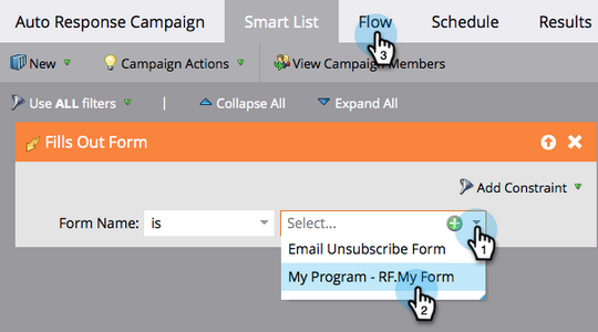 We’re setting up this campaign to run whenever a person fills out the form you created in Landing Page with a Form.