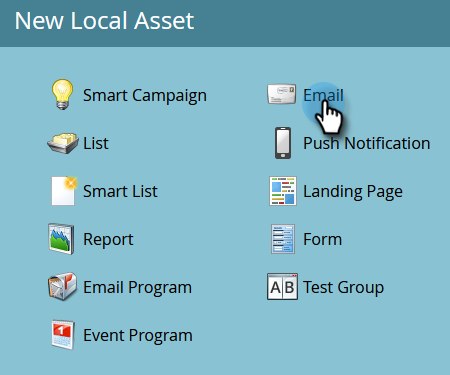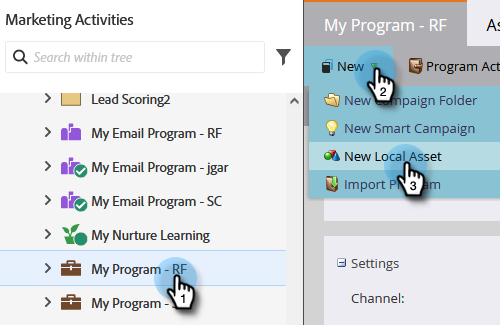 Select your program in the left menu, click the New drop-down, and select New Local Asset.