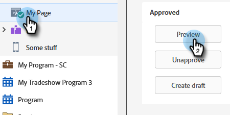 Select My Page (this was created in the Landing Page with a Form quick win) and click Preview.