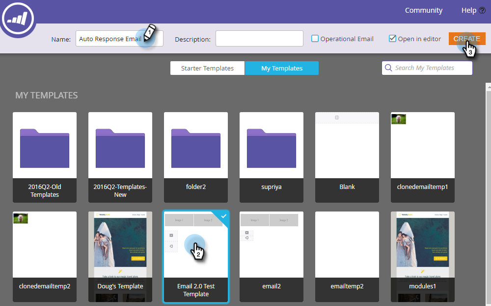 Name your email “Auto Response Email,” choose a template, and click Create.