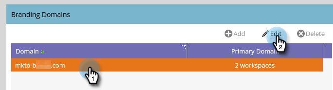 Scroll down to Branding Domains. Select your domain and click Edit.