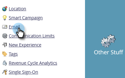 To find your Marketo tracking link, go to the Admin area.