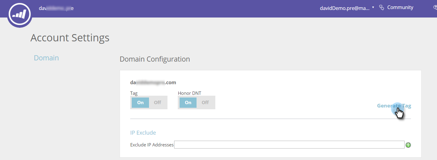 2. In Domain Configuration, locate the relevant domain and click Generate Tag.
