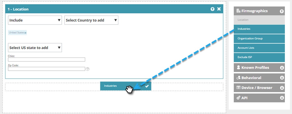 Drag Industries from the right-hand menu and drop it into the segment editor.
