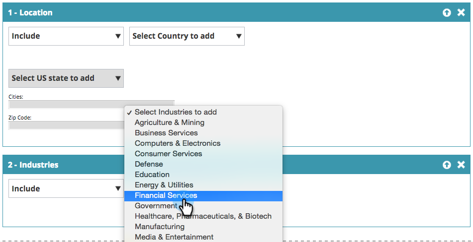 Select Industries to add from the drop-down. Select the Financial Services Industry.