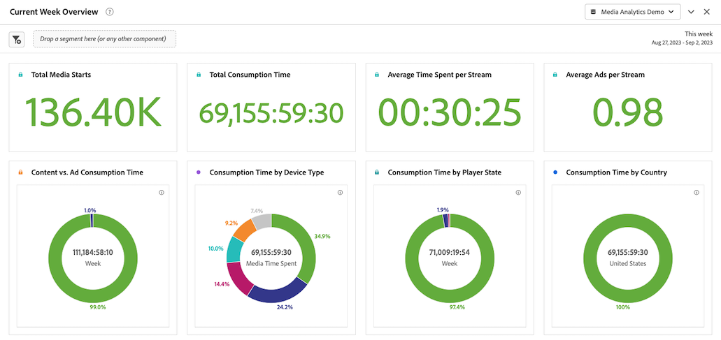 예를 들어, 오디오 소비 템플릿을 선택하면 다음 오디오 기반 대시보드가 있는 프로젝트가 표시됩니다.