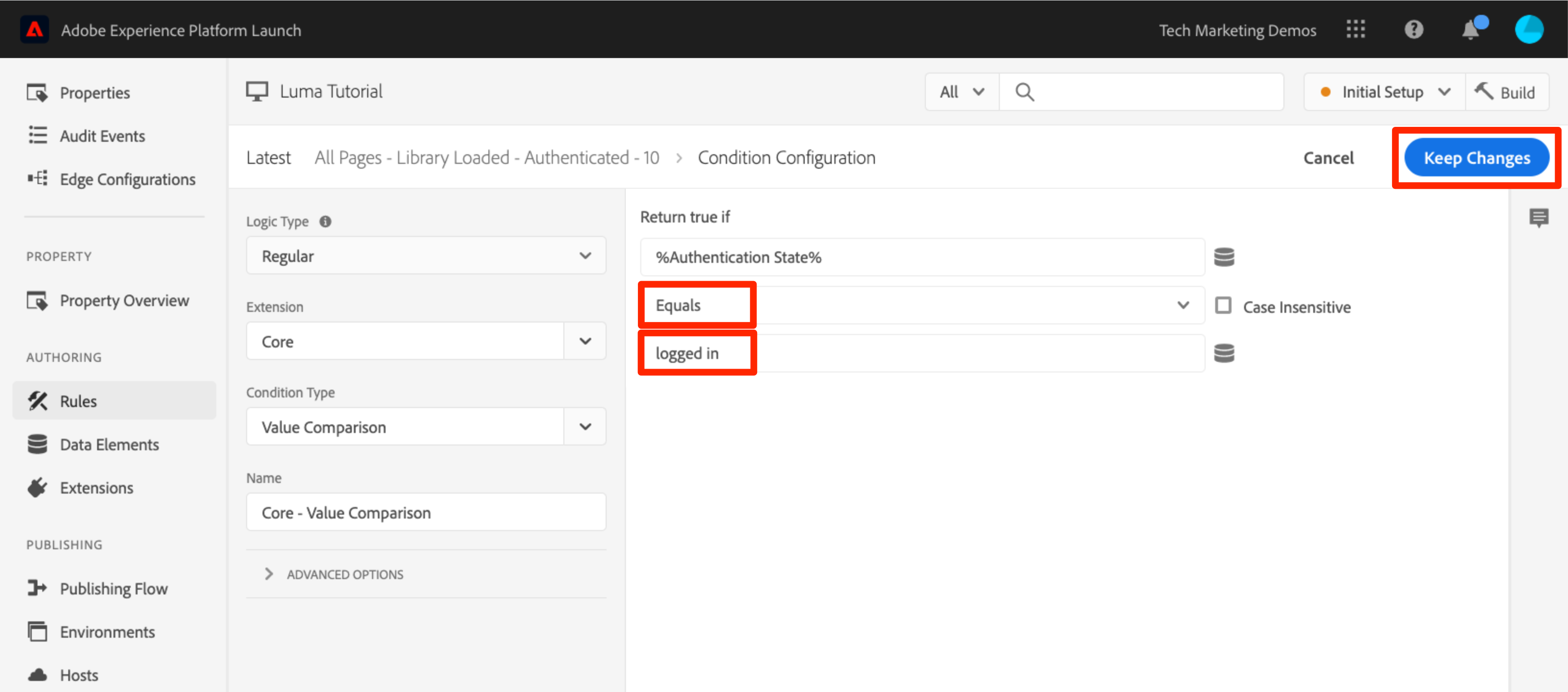 In the earlier lesson, Add Data Elements, Rules, and Libraries you created a data element and used it in a rule. Now, you will use those same techniques to send a Customer ID when the visitor is authenticated.