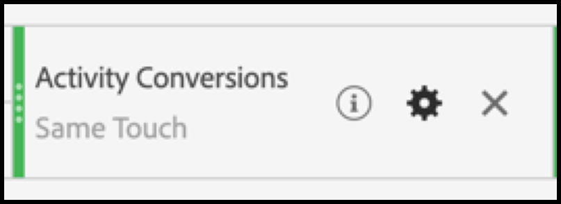 - 활동에 대한 관련 목표 지표(예: Activity Conversions)를 정의로 드래그하고 이 목표 지표의 톱니바퀴 아이콘을 사용하여 앞에서 설명한 대로 기여도 분석 모델을 (방문)으로 조정합니다.