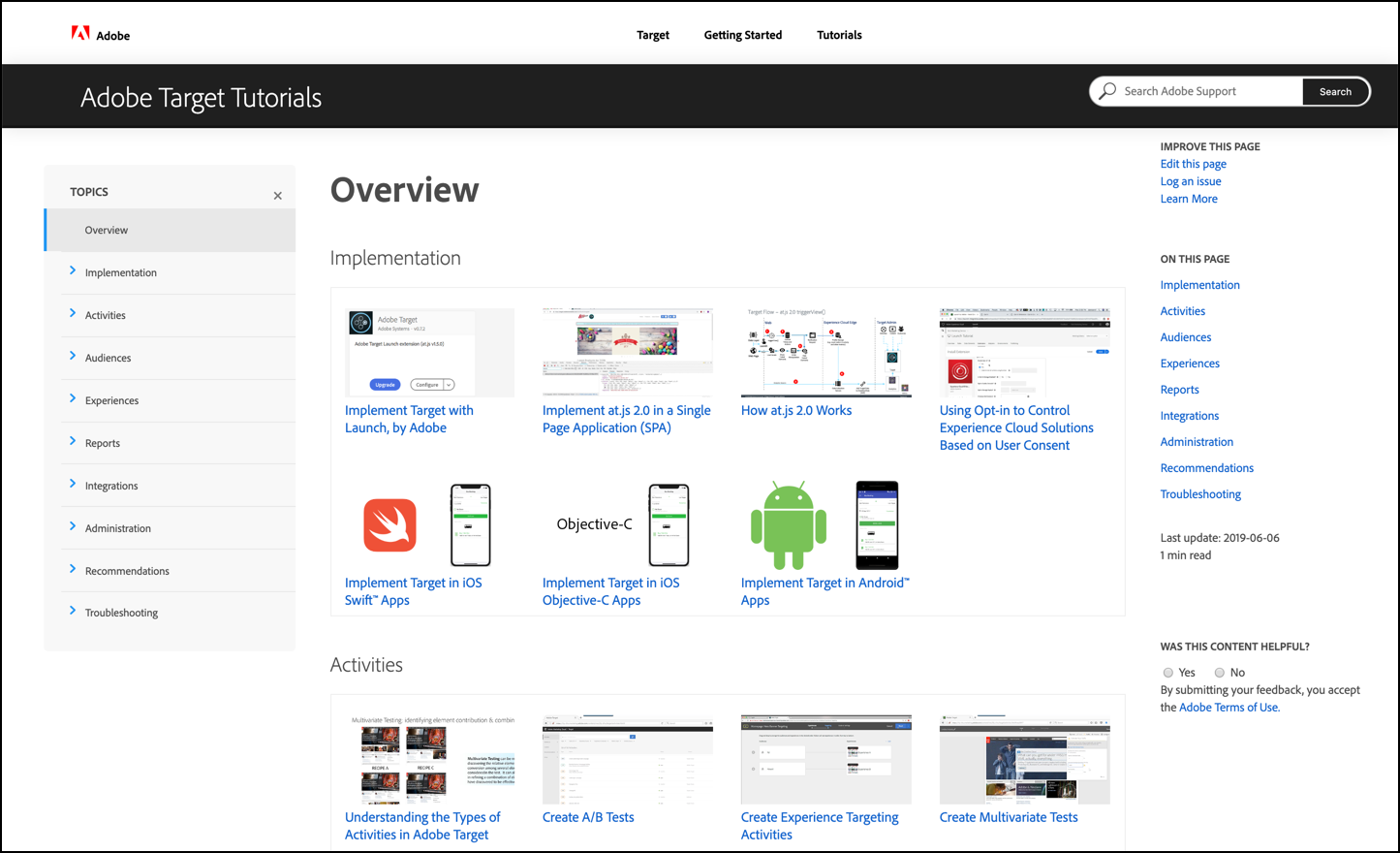 Nella pagina Adobe Target Experience League è disponibile una raccolta di video e tutorial che evidenziano le funzionalità di Target.