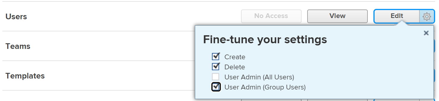 If you are a group administrator, you can reset passwords only for users in the groups where you are designated as an administrator. Also, the User Admin (Group Users) permission must be enabled in your access level: