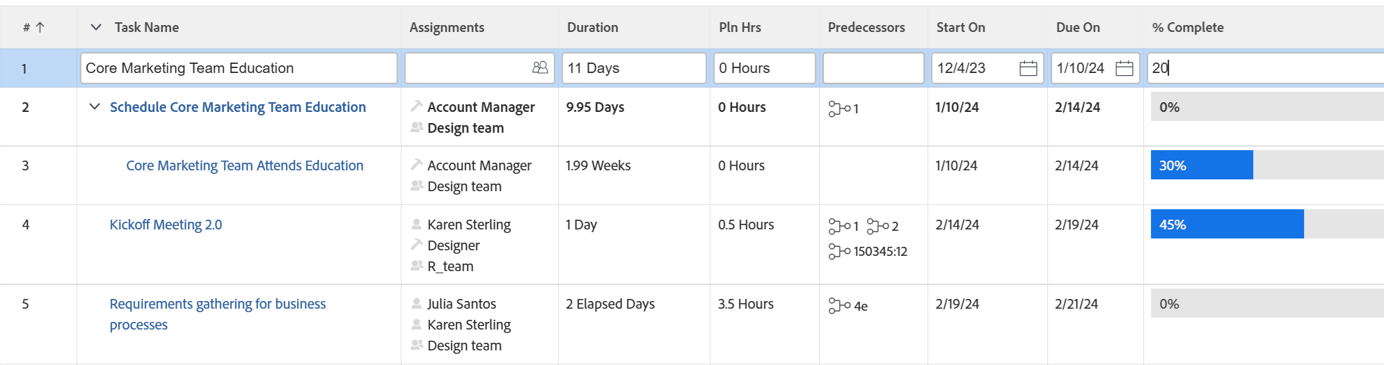 Inline edit items in a list in Adobe Workfront