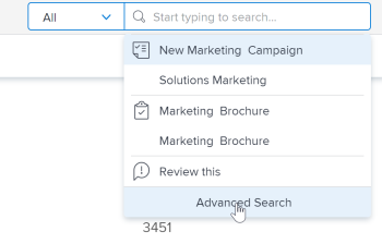 This type of search is helpful when you can’t remember a keyword associated with an object but you know some specific information about that object (example: Project Priority, Document Owner Name, etc.).