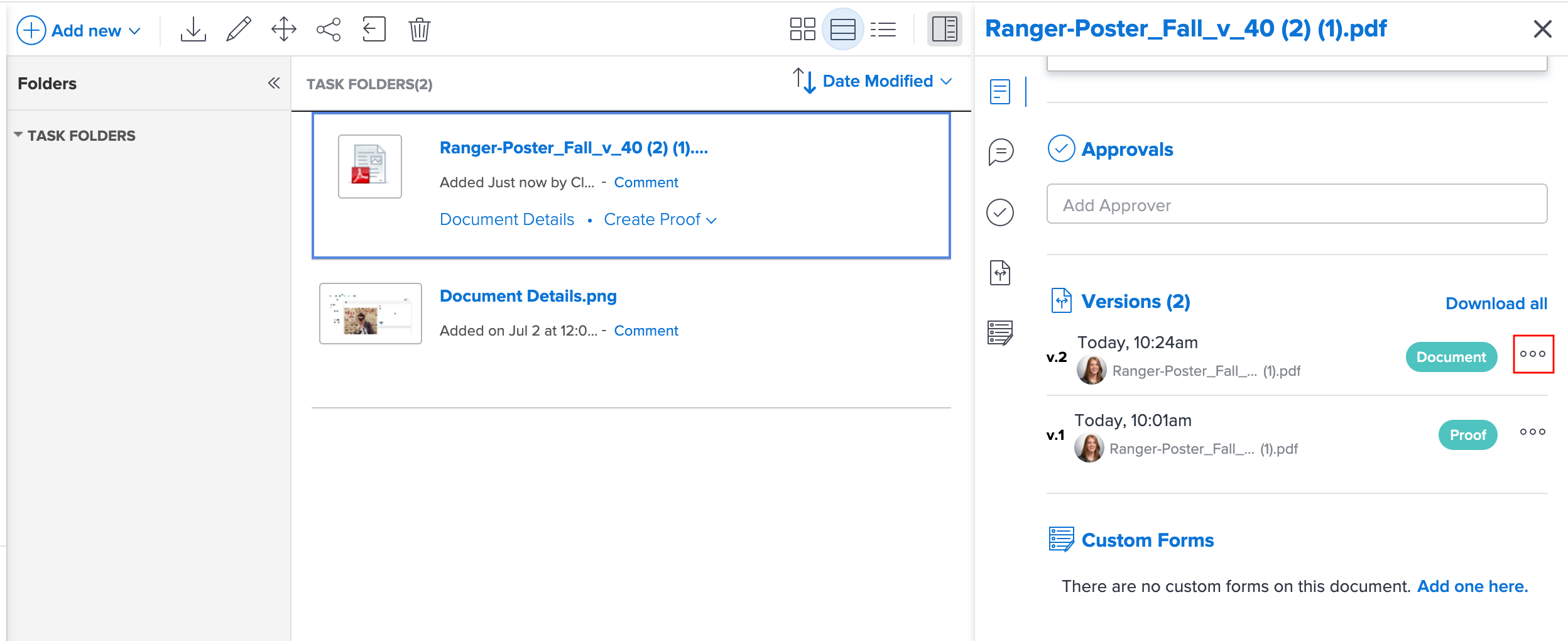 Along with viewing the version’s details, you can make changes to the version, such as its name, metadata, and proofing settings (if it’s a document proof).