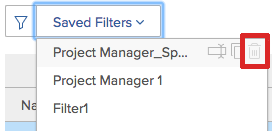 Click Saved Filters, hover over the filter you want to delete, and click the Delete icon.