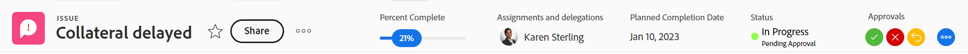 note note NOTE Depending on how your Workfront administrator or Group administrator modified your Layout Template, the fields in the Issue Details area might be rearranged or not display. For information, see Customize the Details view using a layout template. To edit information in the Details section, do the following: