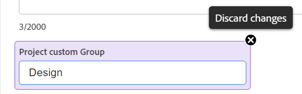 (Optional) To remove any of the information you added in the Edit Projects box, hover over an edited field, then click the x discard icon to the upper-right of the field.