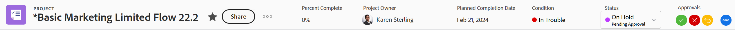 - Progress Status: Workfront automatically sets the condition based on the Progress Status of tasks on the Critical Path. For more information about understanding Progress Status, see Task Progress Status overview.