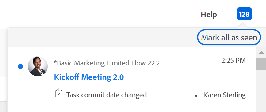 The Project Owner is notified in the Notifications area that a task or issue Commit Date has changed.
