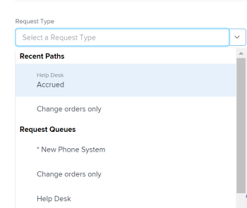 From the Recent Paths section, select a path you used recently to open a request queue. A path includes the request queue, the topic groups, and the queue topic that you submitted to recently. The last three paths display by default.
